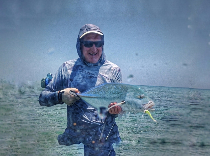 Bluefin trevally fly fishing Maldives streamer